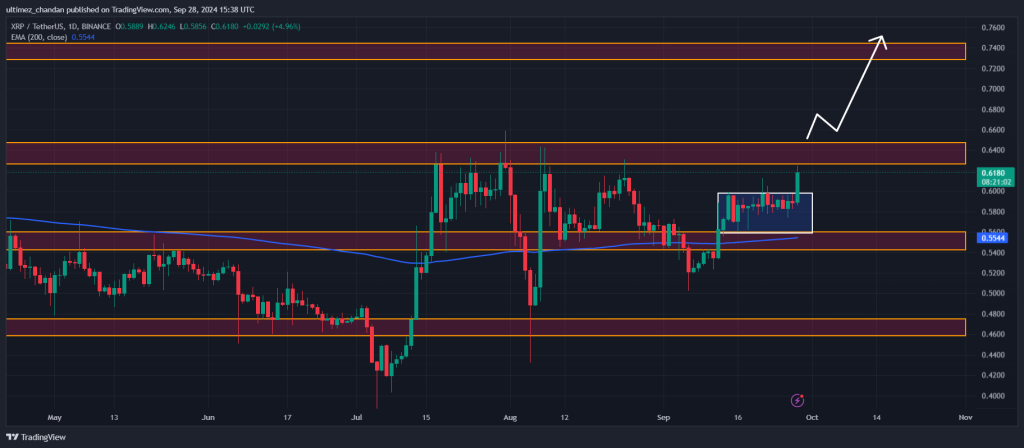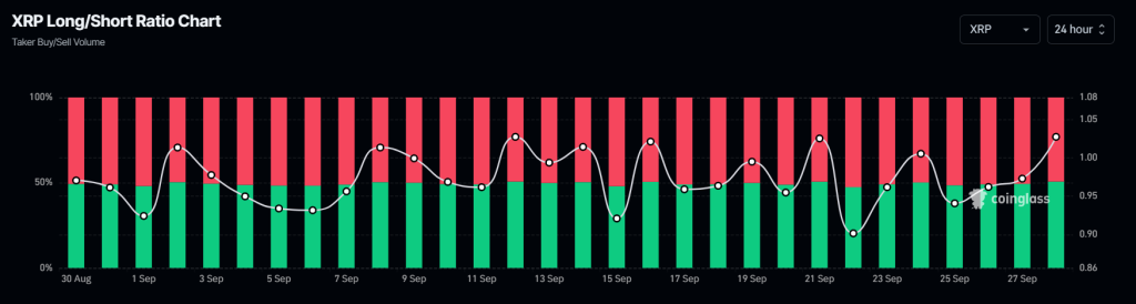 최근 XRP의 가격은 5.2% 넘게 올랐고 거래량은 64% 급증했습니다. 이것은 투자자들이 XRP에 상당한 관심과 신뢰를 보이고 있다는 것을 의미하는데요.